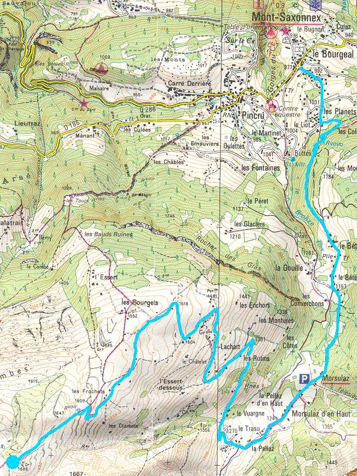 | Access: | Motorway to chamonix. After passing by Bonneville get out in exchanger 18 which has the indications: Scionzier, Morzine, Avoriaz, Mt Saxonnex, etc. Follow road D286 to reach the site of "Le Bourgeal (Mt Saxonnex)". Once there turn left in the square to take a road that passes by Les Planets, Le Bete, the chairlift of Morsulaz, La Pellaz, Le Vuargne, Les Rutins, ....to finally arrive to Les Franchets. Continue and park in the first available space. |